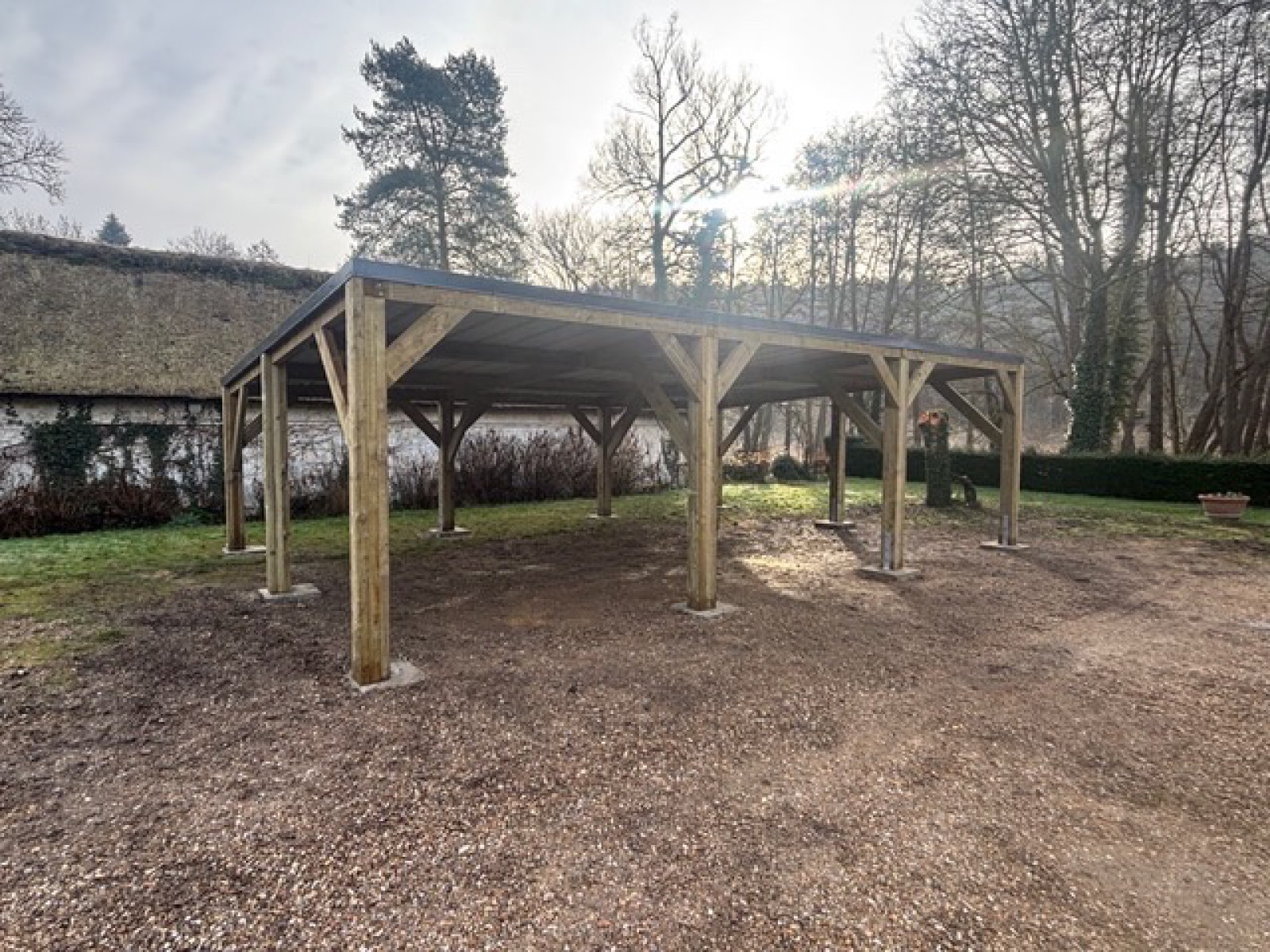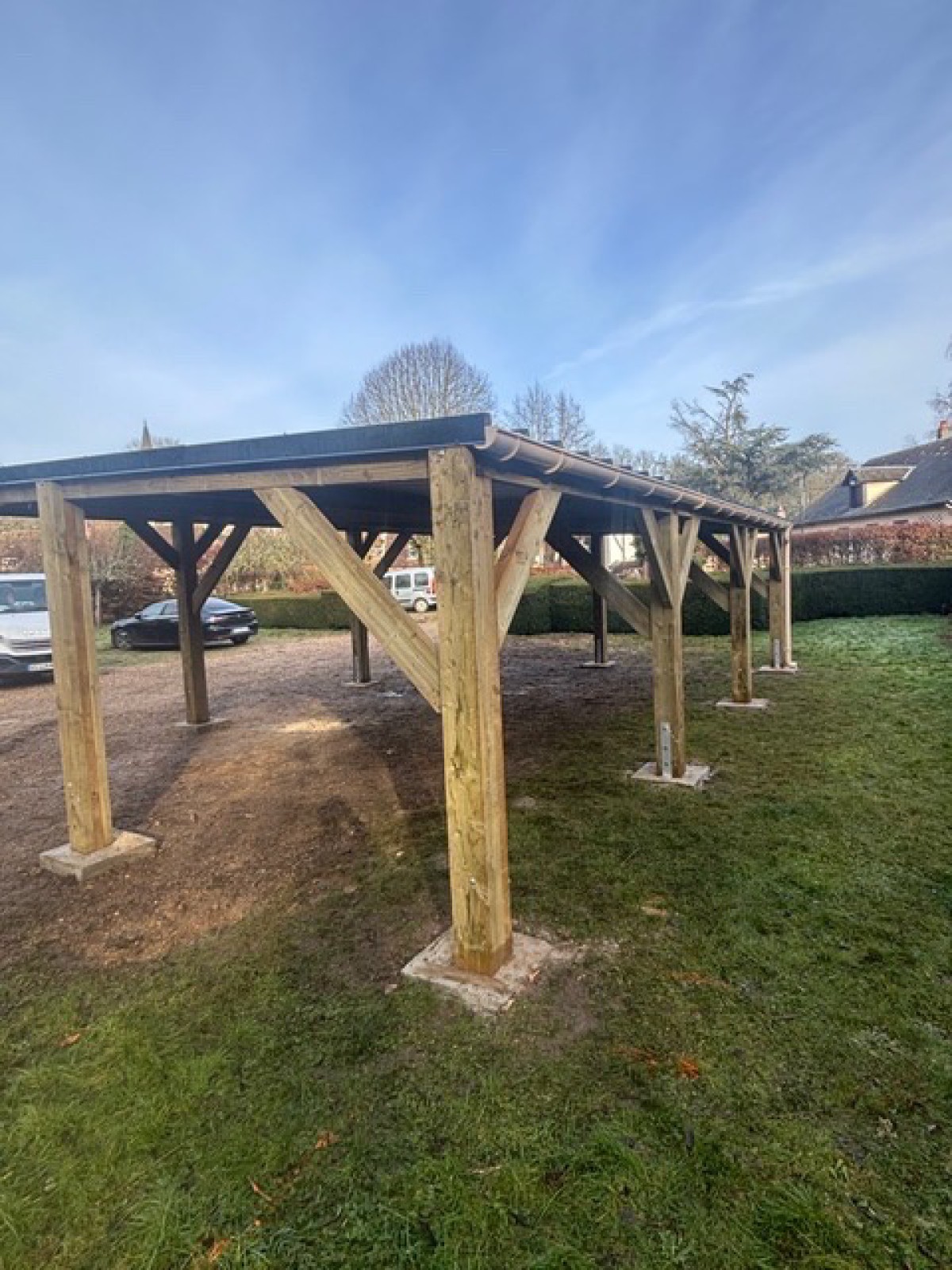 Nous sommes intervenus entre Evreux et Conches-en-Ouche pour la pose d’un carport Monopente de 54m2.