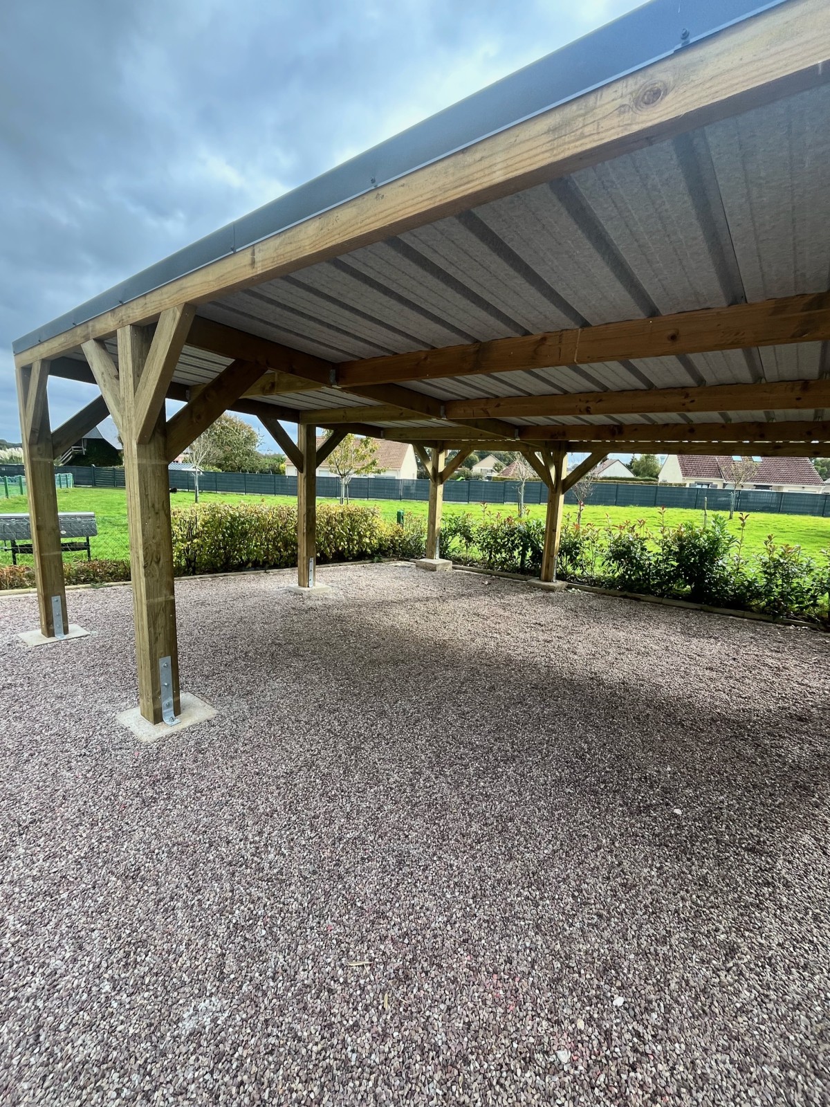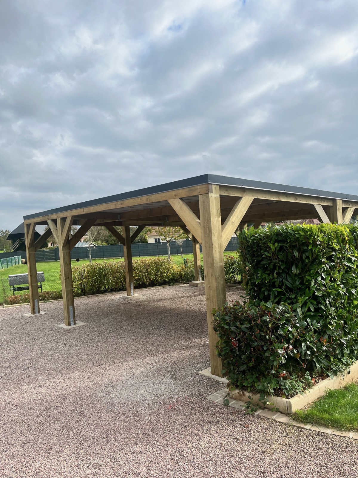 Nos équipes sont récemment intervenues près de Bolbec pour la pose d’un carport Monopente de 45m2