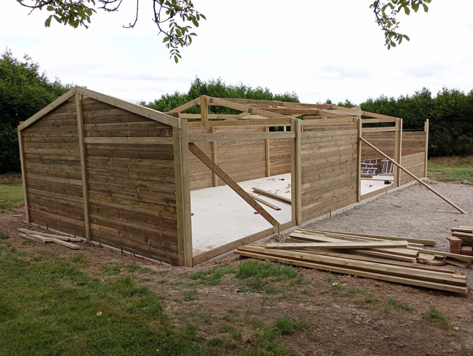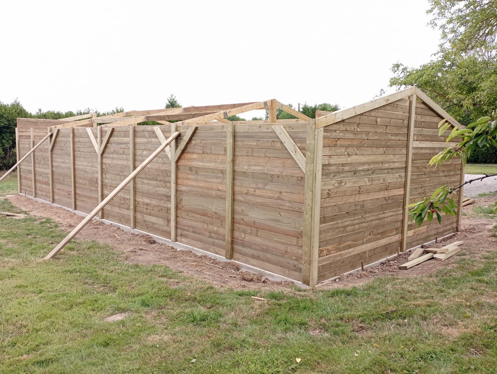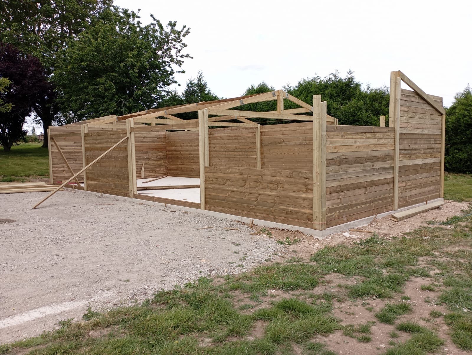 Réalisation d’un garage double pente de 6,00x14,00 m en clin Douglas 42mm