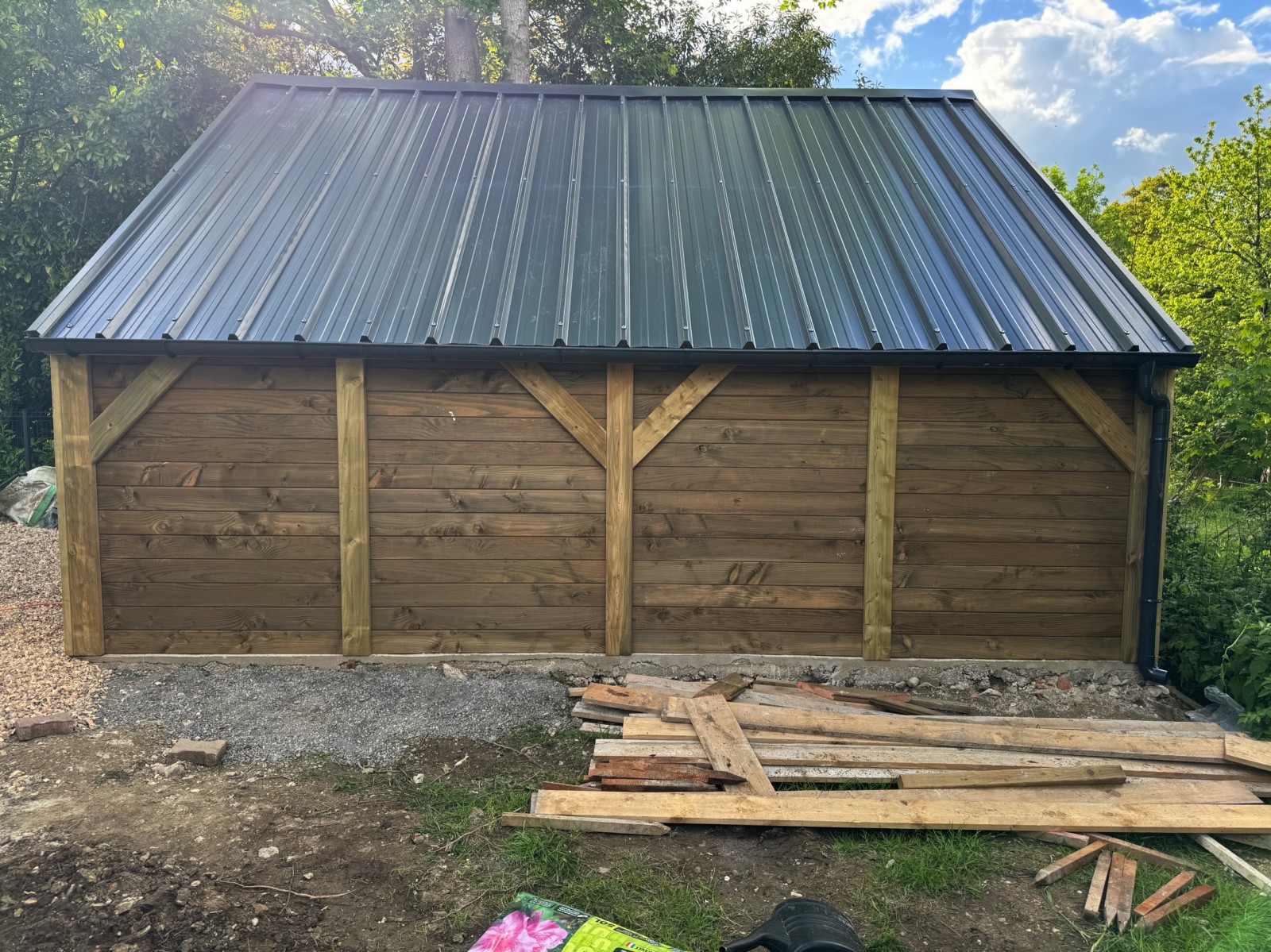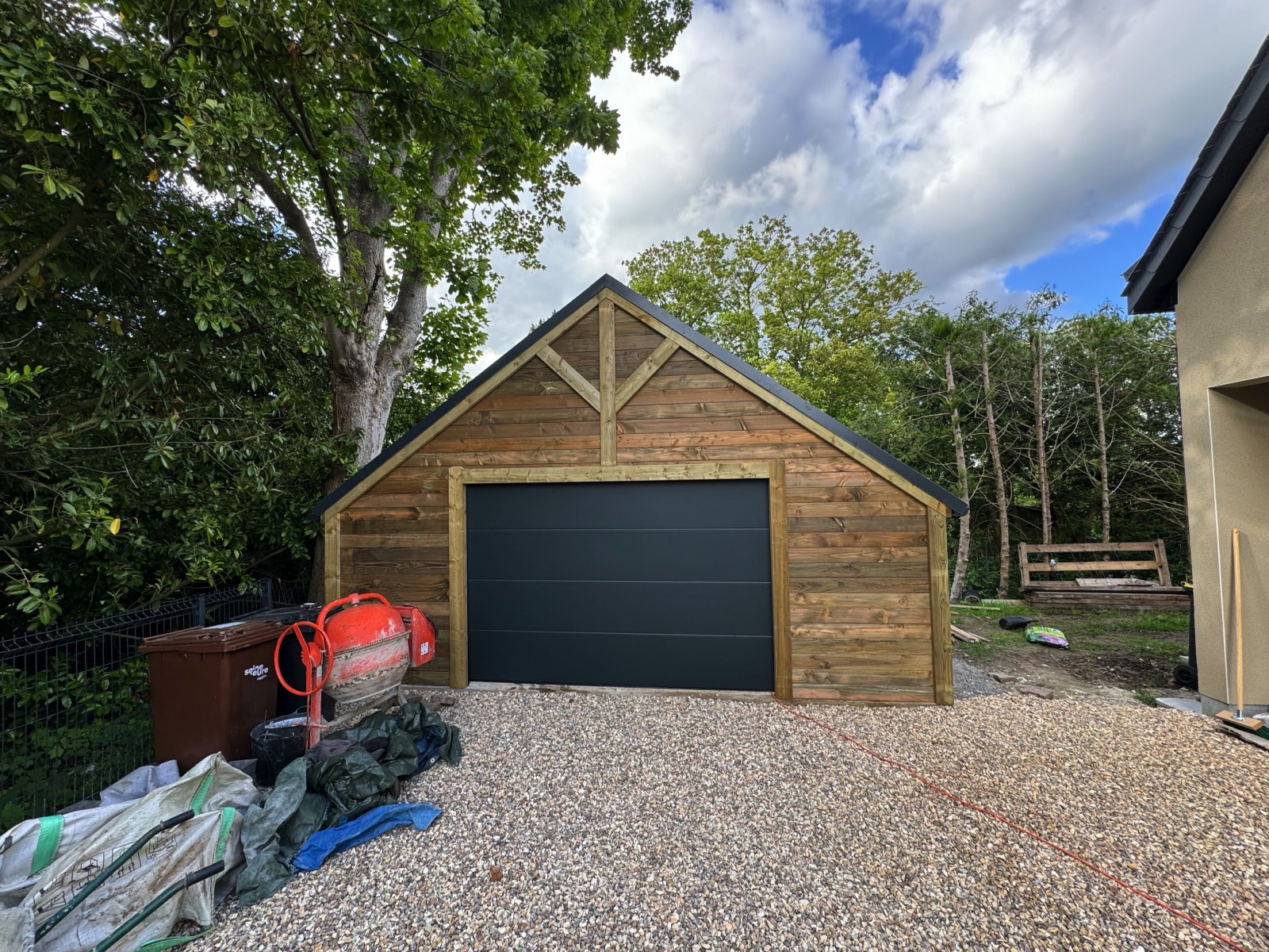 Nos équipes sont intervenues pour la construction d'un garage bois 6,00x6,00m en clin Douglas 42mm traité auto-clave (classe 3).