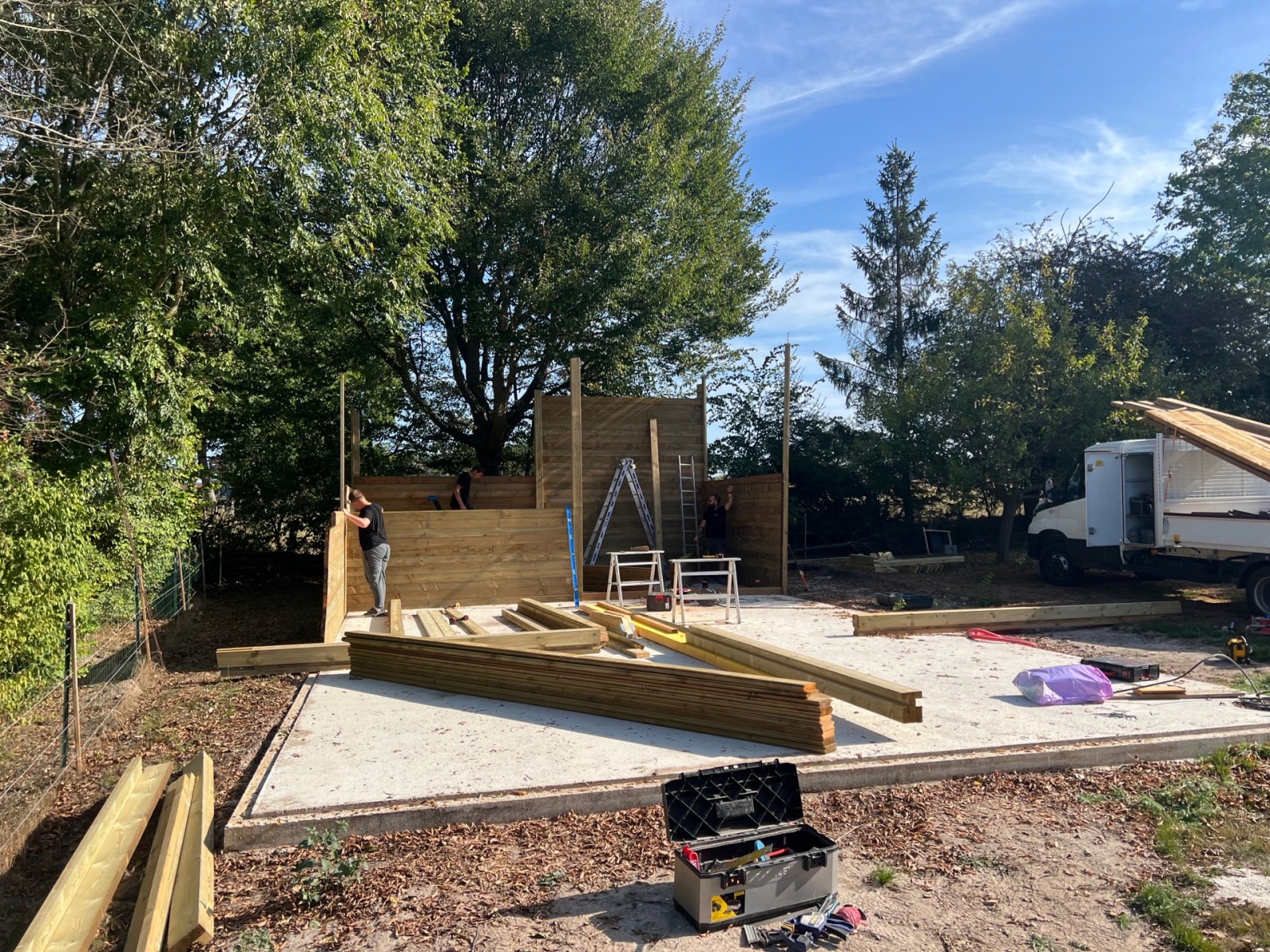 Début de chantier sur la commune de Pont Audemer création et pose d’un garage de 7,00x14,00m pour recevoir un grand camping-car.
