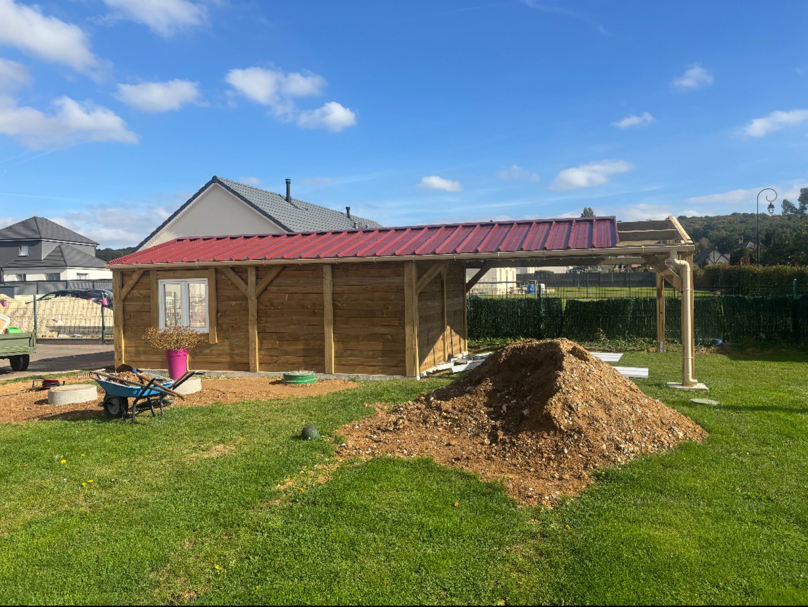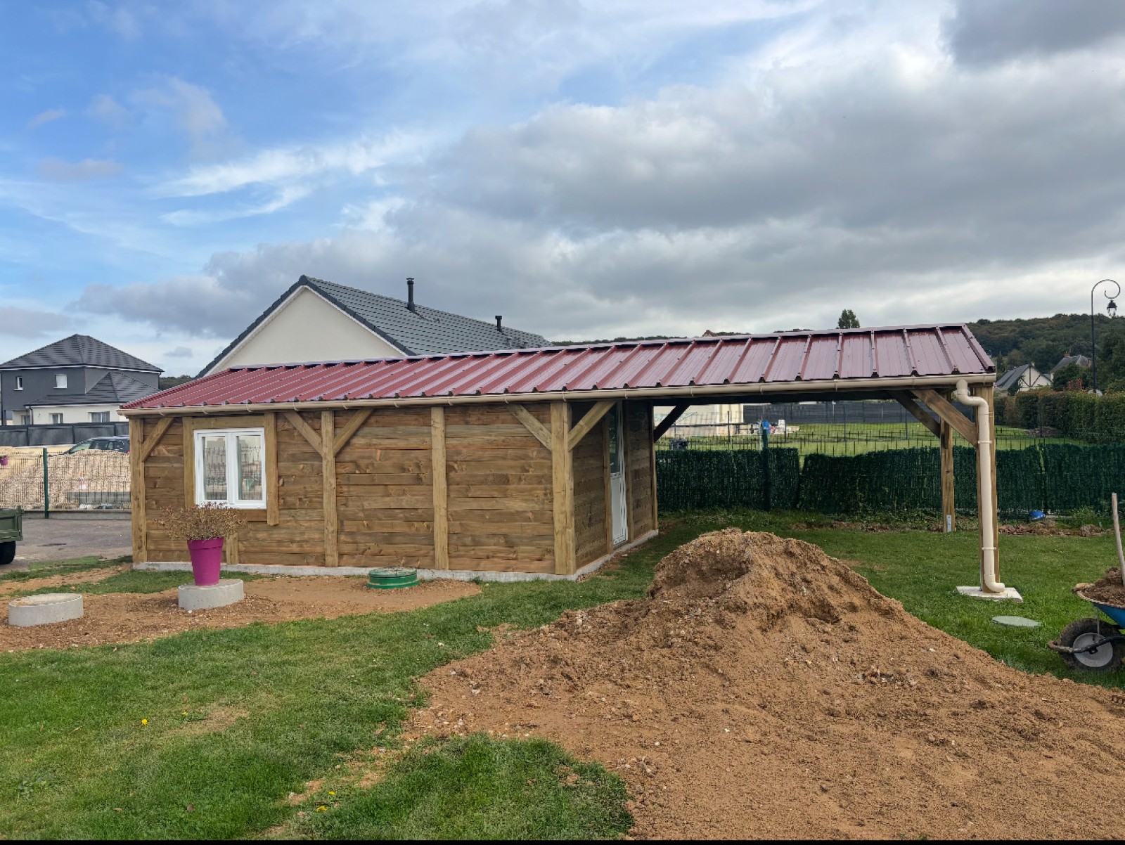 Nos équipes sont récemment intervenues près des Andelys pour le montage d’un garage de 24m2 et d’un carport de 16m2.
