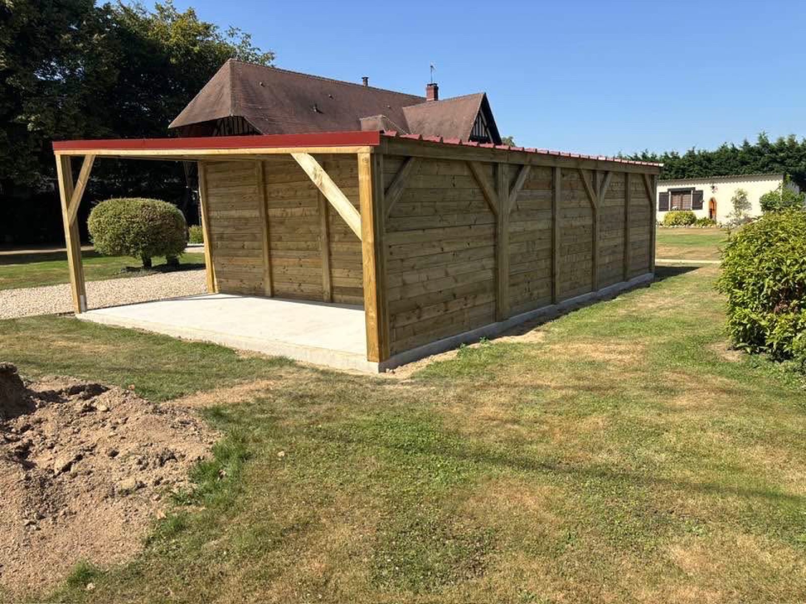 Un mois avant, nous sommes intervenus pour réaliser le terrassement et la dalle béton.