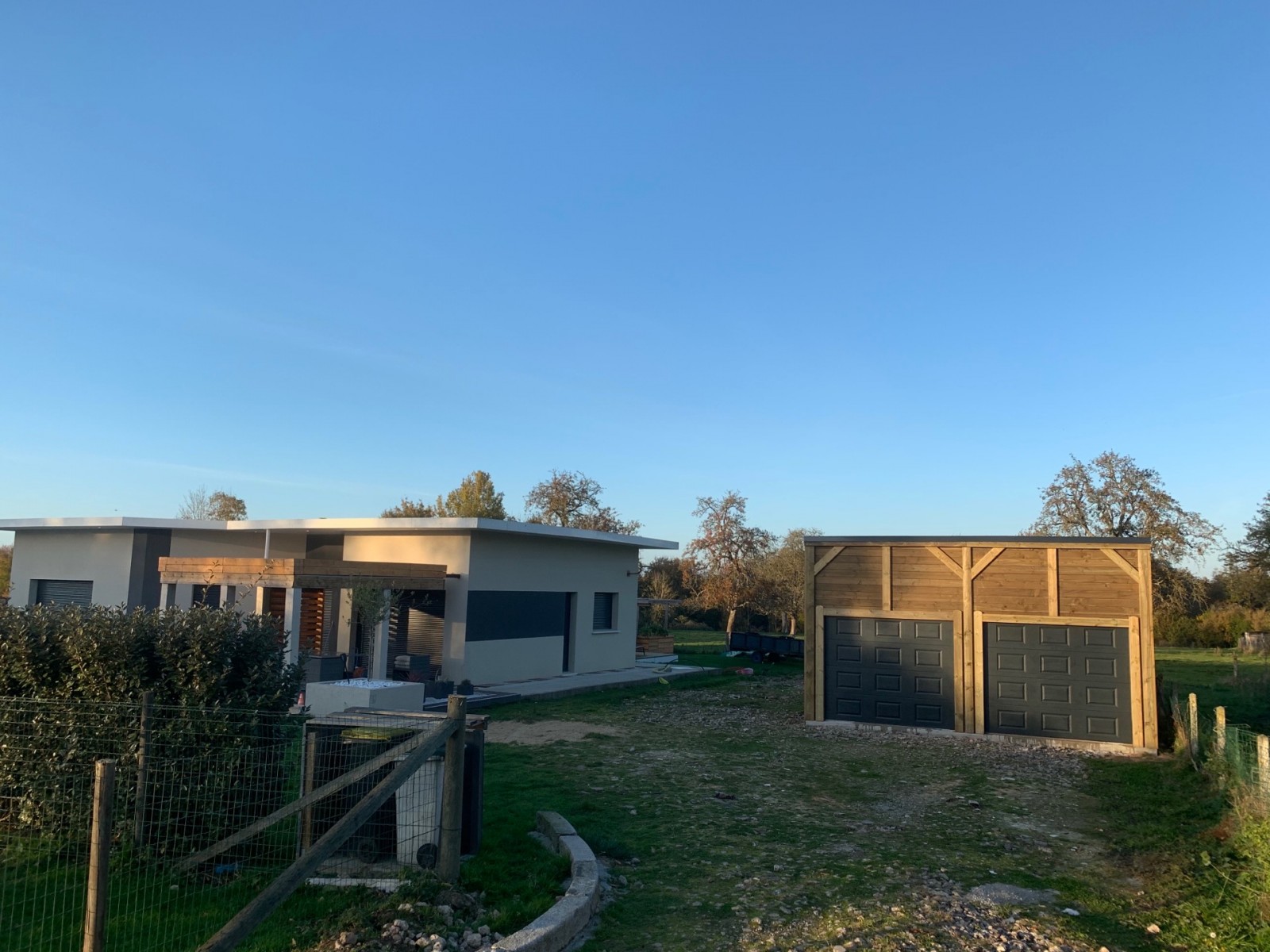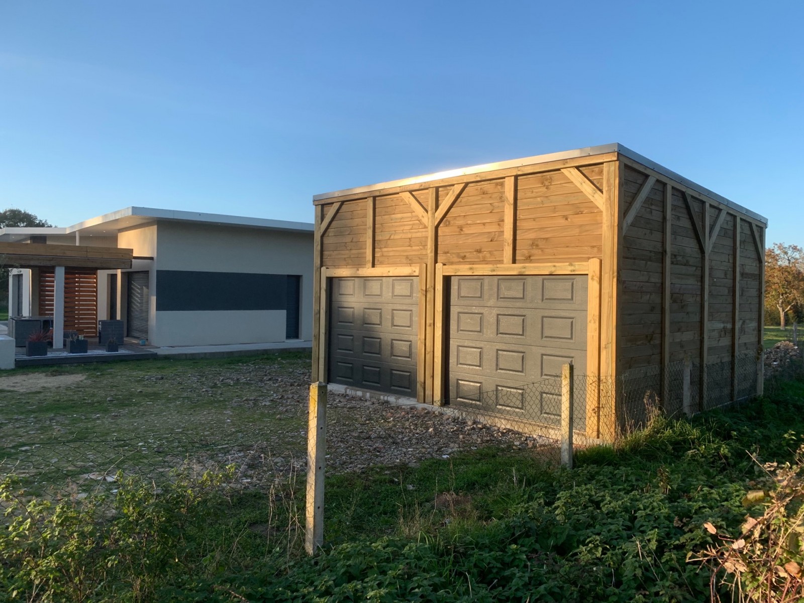 Garage mono pente 6,00x6,00m Réalisé sur la commune de Saint Grégoire du Vieil en clin Douglas de 42mm. Porte sectionnelle Hauteur 2,00m Largeur 2,40 m.