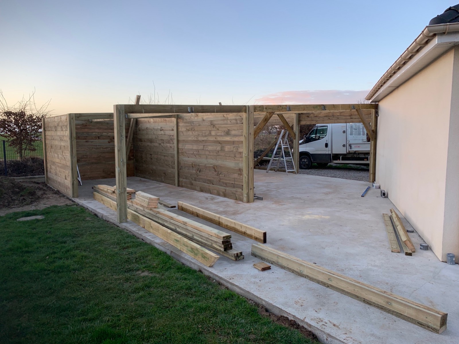 Début chantier sur Ecardenville 27 garage mono pente de 9,00x7,00m en clin Douglas .