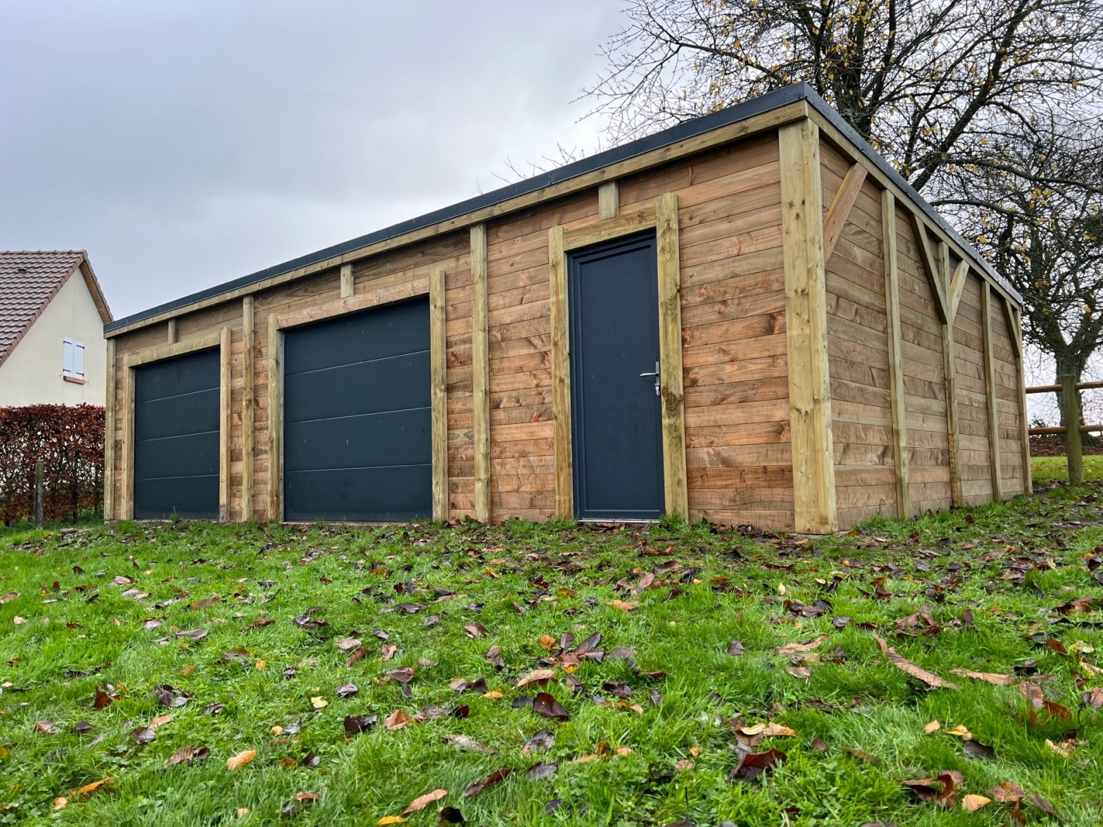 Garage mono pente 6,00x6,00m en clin de 42 mm Douglas réalise sur la commune de fidelaire avec porte sectionnelle gris anthracite