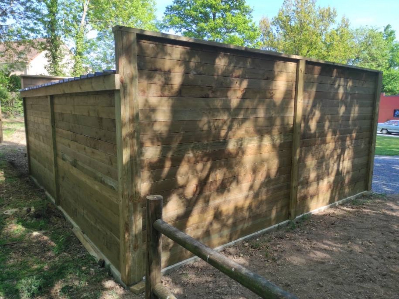 Début de chantier sur la commune de conche en ouche garage toit plat de 6,50x6,00m en clin Douglas de 42 mm. 2 porte basculant gris anthracite