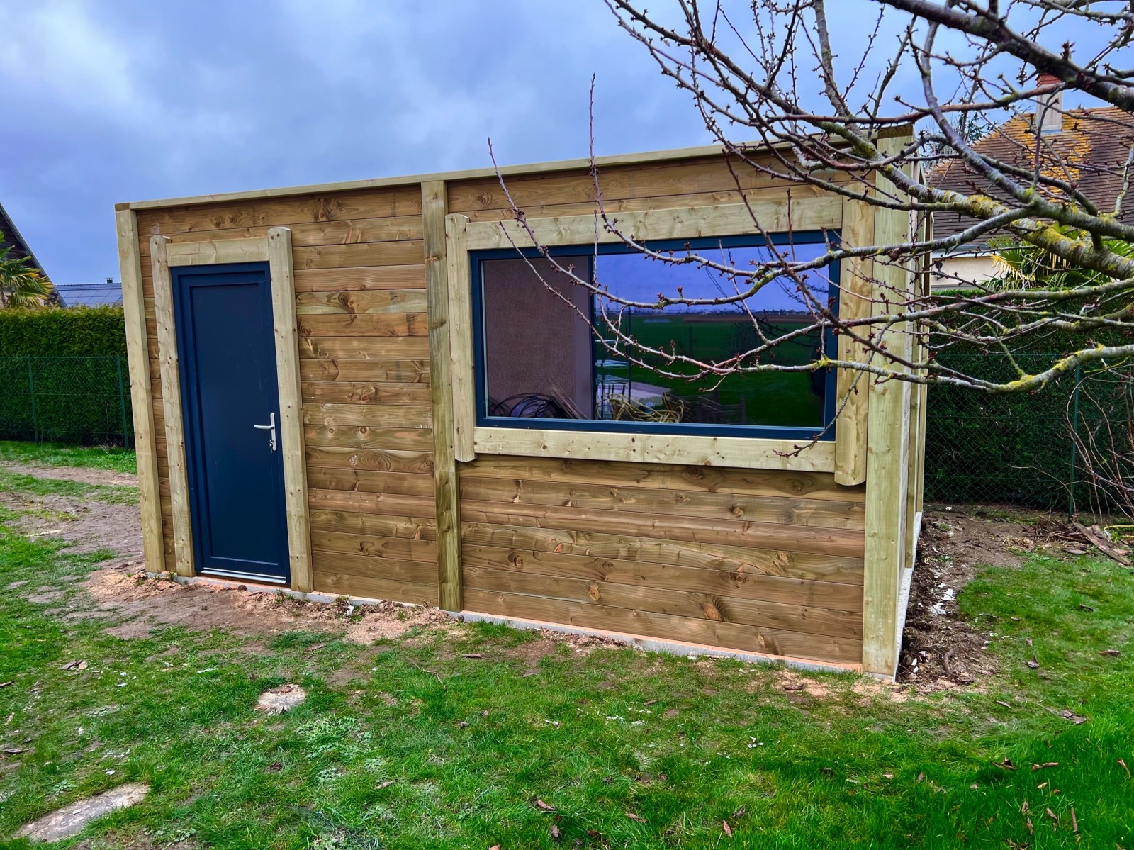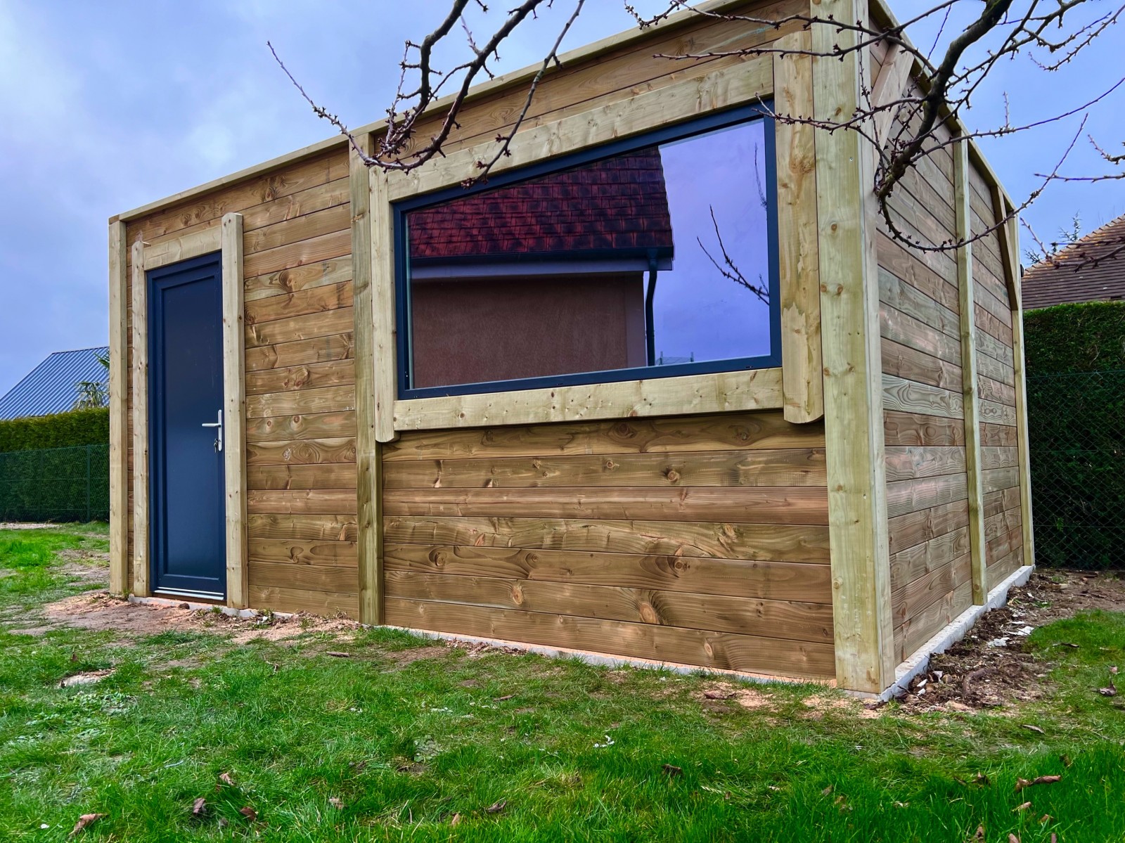 Nos bâtiments sont fabriqués sur-mesure dans nos ateliers en clin Douglas de 42mm traité auto-clave (classe 3).