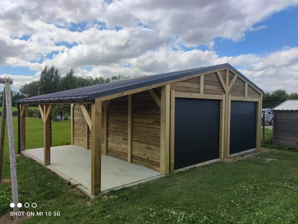 Garage double pente de 36m2 et auvent de 6,00 x 2,00m