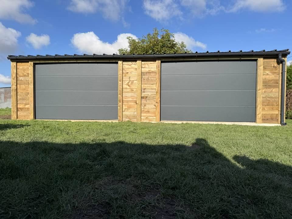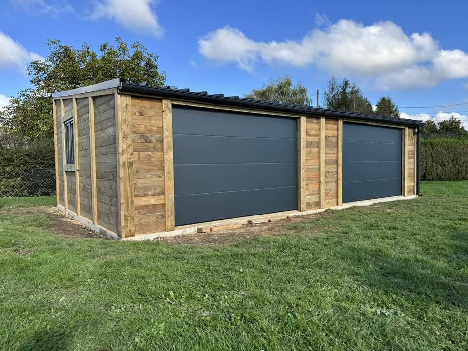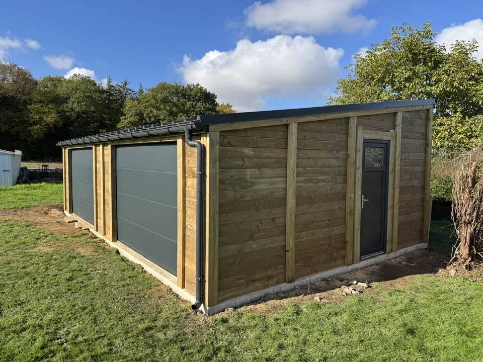 Il y a deux semaines, pose d'un double garage mono pente de 49,5m2.