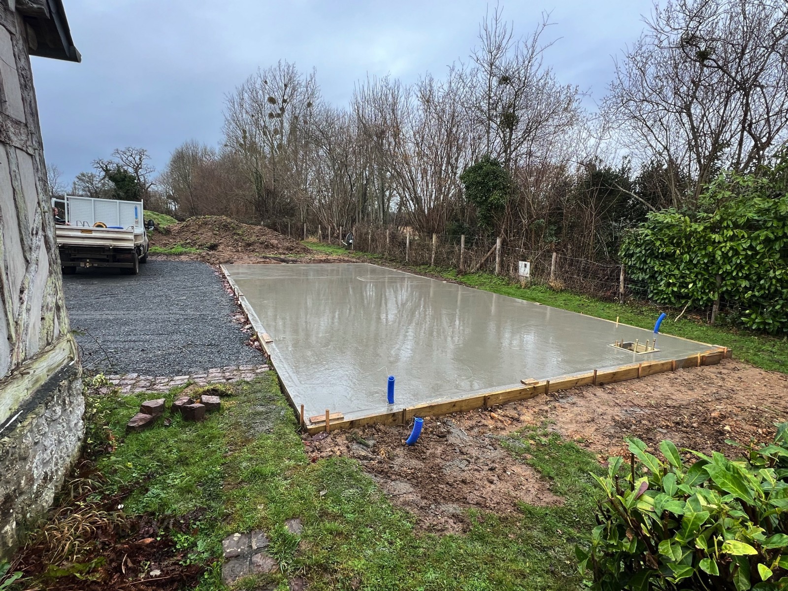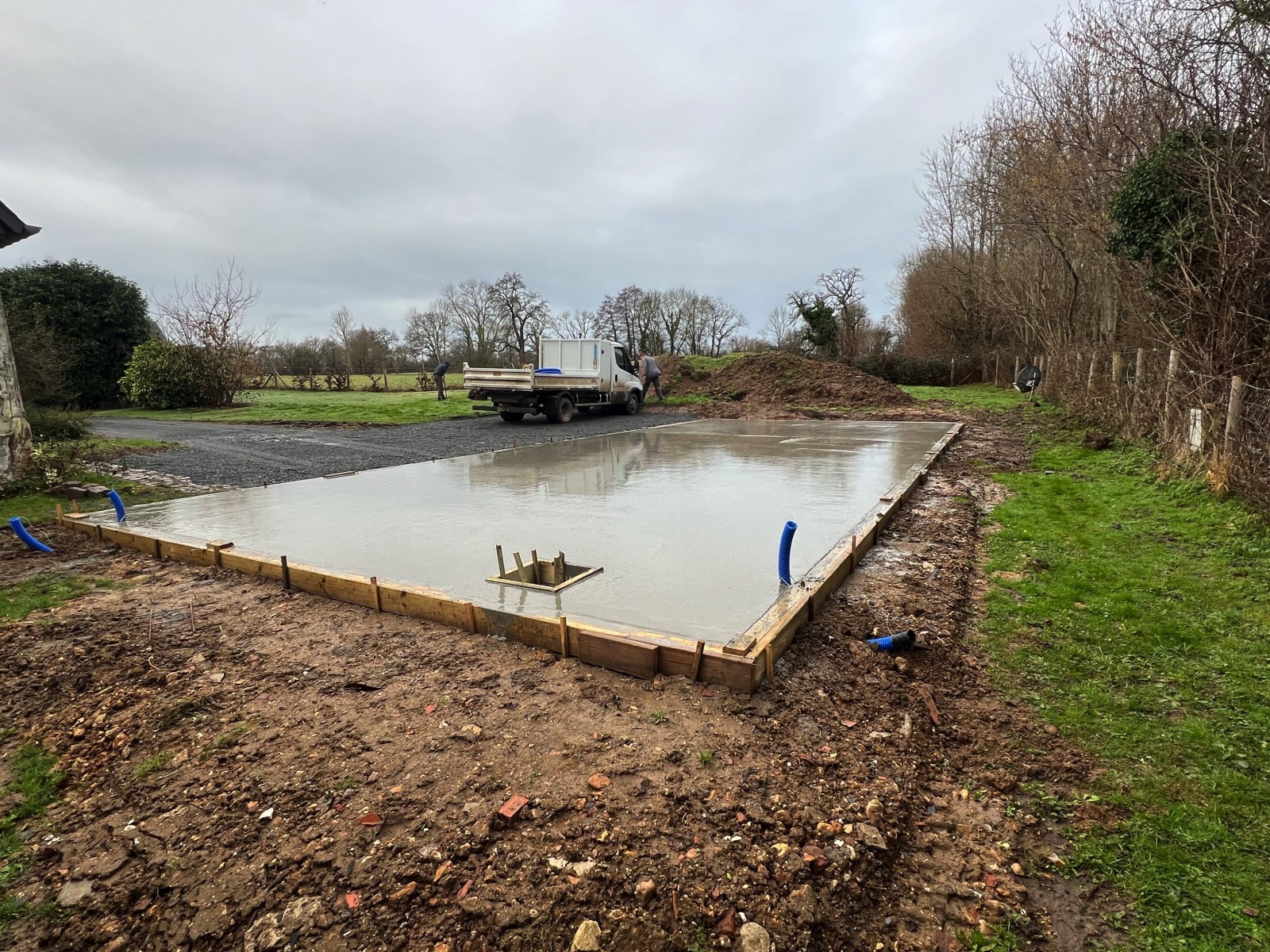 La semaine dernière, coulage d’une dalle béton de 6,50 x 15,00m près de Touques pour accueillir un futur garage Macabois !