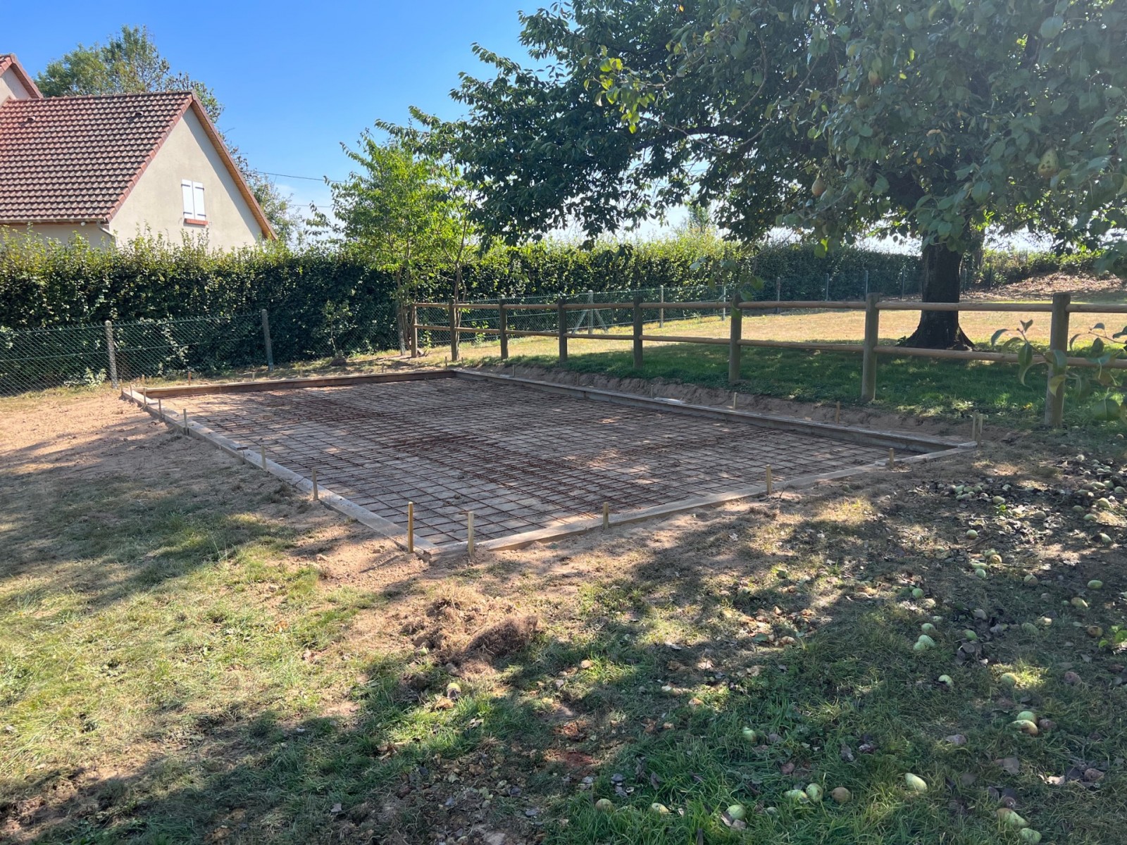 Aujourd’hui terrassement d’une surface de 5,50x10,00m sur la commune de Bocasse pour recevoir bientôt un triple garage en clin de 42 mm