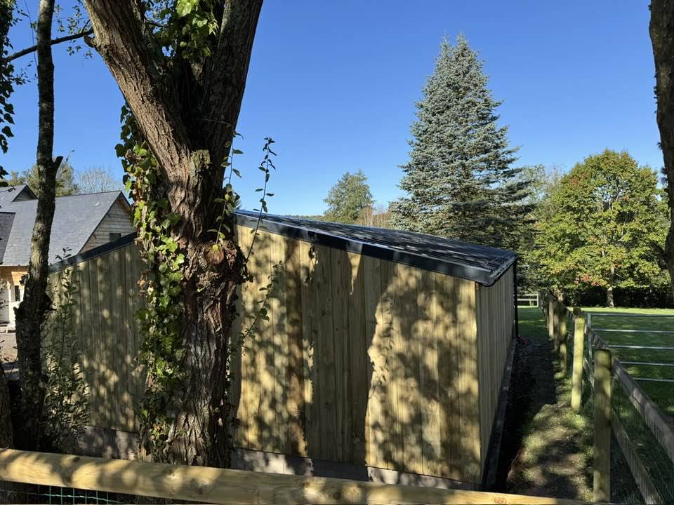 Nos bâtiments sont fabriqués sur-mesure dans nos ateliers en clin Douglas de 42mm traité auto-clave (classe 3).